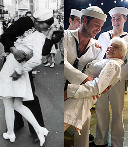 A primeira das imaxes é un exemplo de patrimonio fotográfico. A famosa fotografía do bico entre unha enfermeira e un mariñeiro en pleno Times Square de New York. A fotografía mostra o festexo en New York do fin da II Guerra Mundial, concretamente no Times Square, un emprazamento da cidade importante para os neiorquinos, que o consideran o centro do mundo e mesmo do universo. A peculiaridade da foto levouna á retina de miles de persoas, converténdose nos Estados Unidos nunha fotografía que pode ser tan aclamada como, por exemplo, a fotografía da propia Marilyn Monroe (suxeitando a saia) ou a da adorada Farrah Fawcett en bikini vermello (fotografía que serviu de inspiración para milleiros de rapazas dos 70 e que a elevou á fama), exemplos, así mesmo de patrimonio fotográfico.